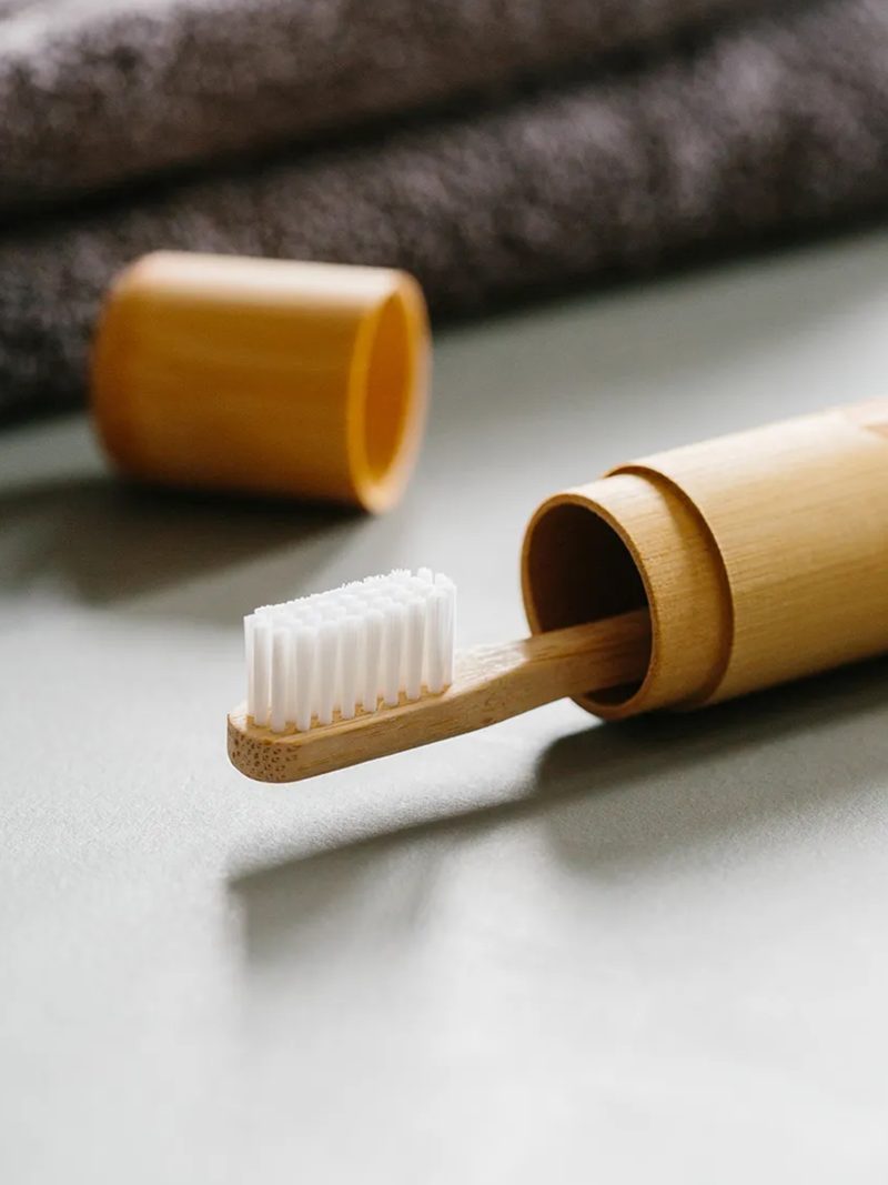 Eco-friendly bamboo toothbrush case from grums aarhus. Bamboo is a type of grass that grows quickly compared to a tree, making it an environmentally friendly alternative to both wood and plastic materials.